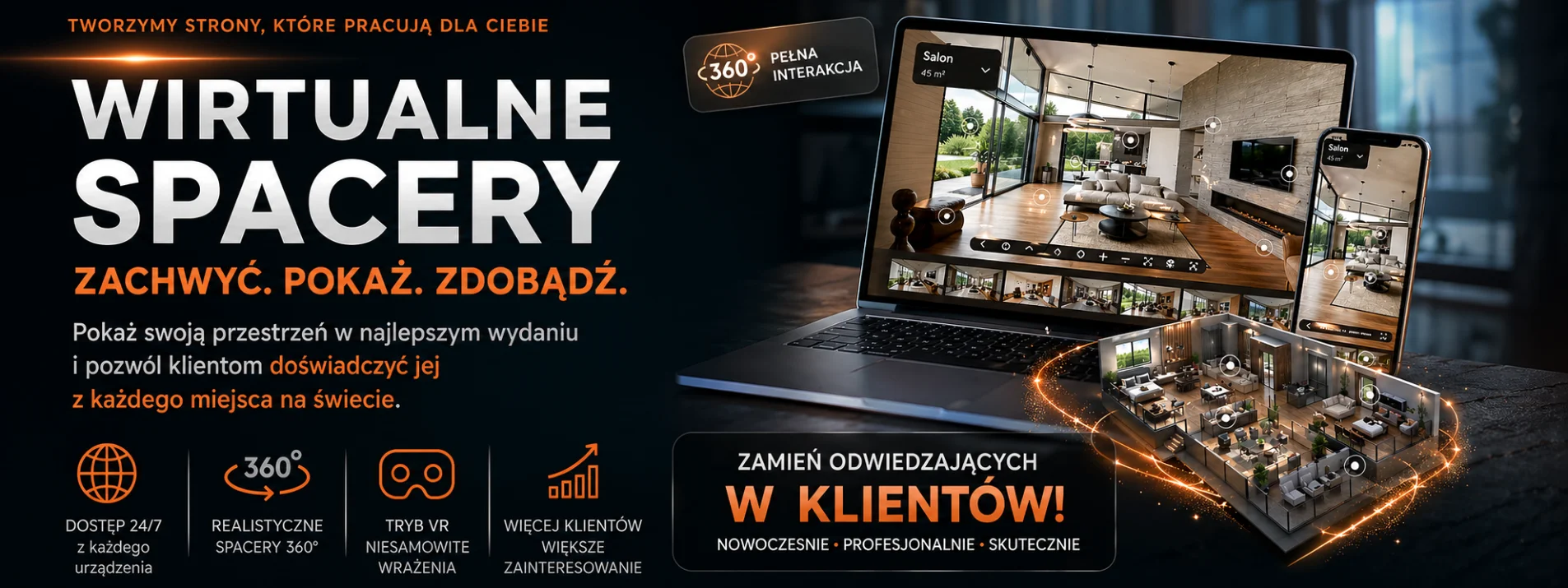 Profesjonalne sesje zdjęciowe i tworzenie interaktywnych spacerów. Integracja z Mapami Google oraz stronami internetowymi. Nowoczesna prezentacja wnętrz i przestrzeni w najwyższej rozdzielczości.